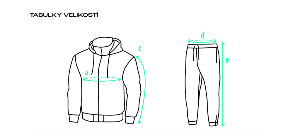 | Velikost mikiny | A: šířka (cm) | B: délka (cm) | C: rukáv |