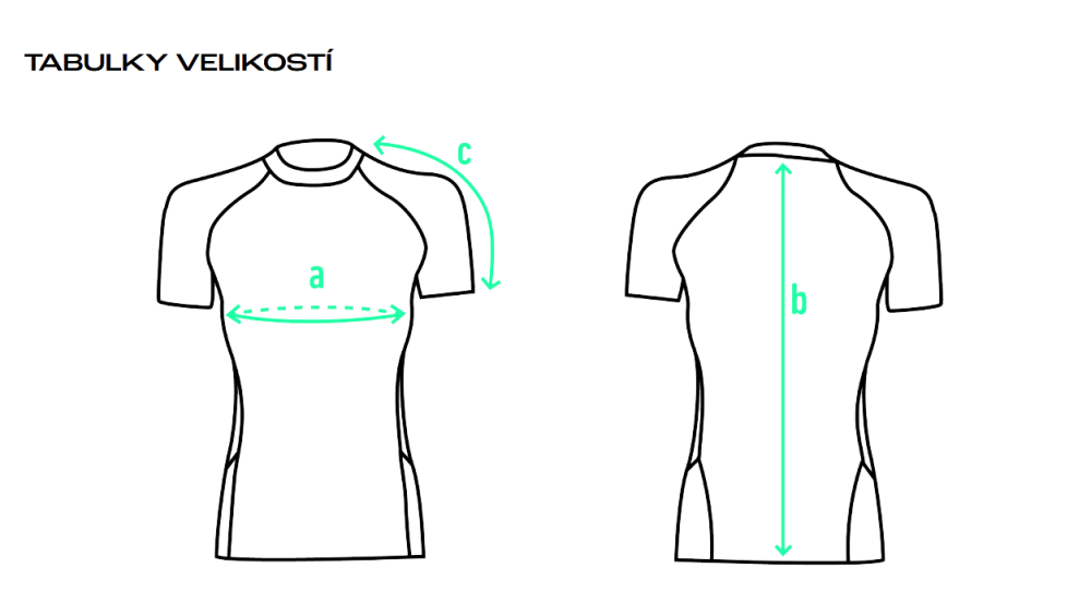 | Velikost | A: hrudník (cm) | B: délka (cm) | C: rukáv (cm) |